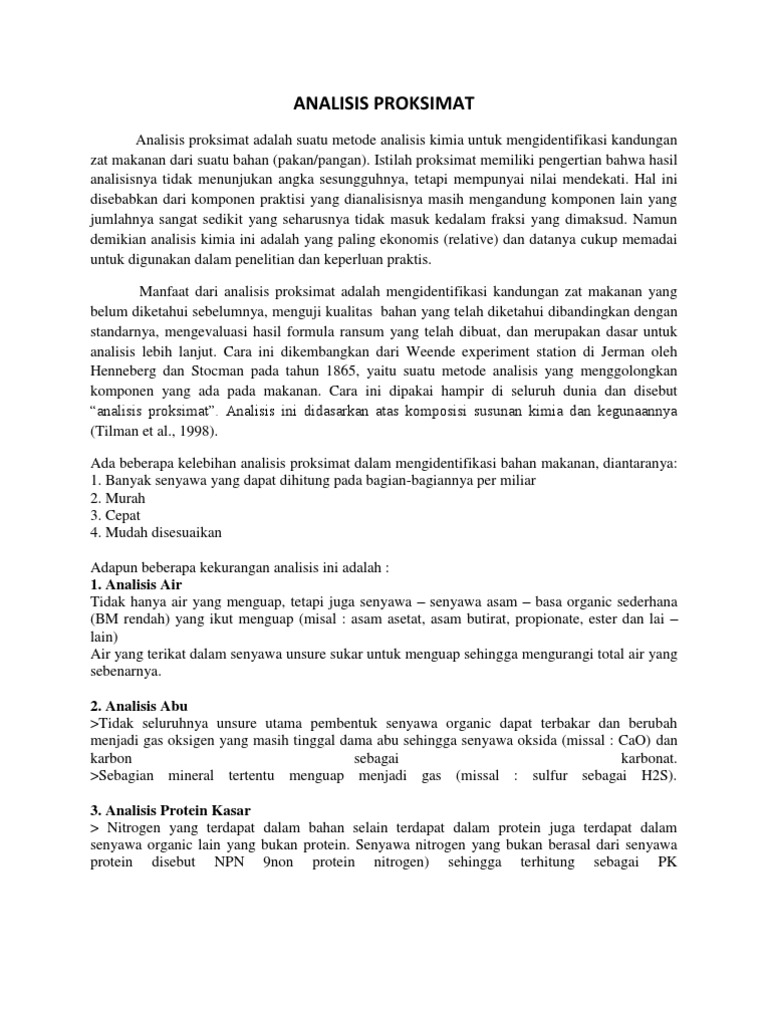 Analisis Proksimat Adalah Suatu Metode Analisis Kimia Untuk