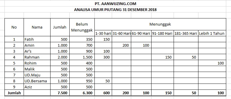 Cara Mudah Membuat Tabel Analisa Umur Piutang Excel