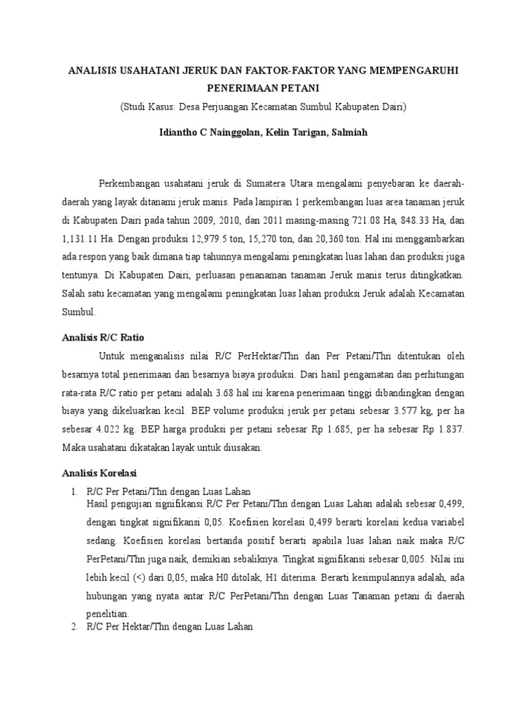 Pdf Analisis Faktor Faktor Yang Mempengaruhi Pendapatan Usahatani