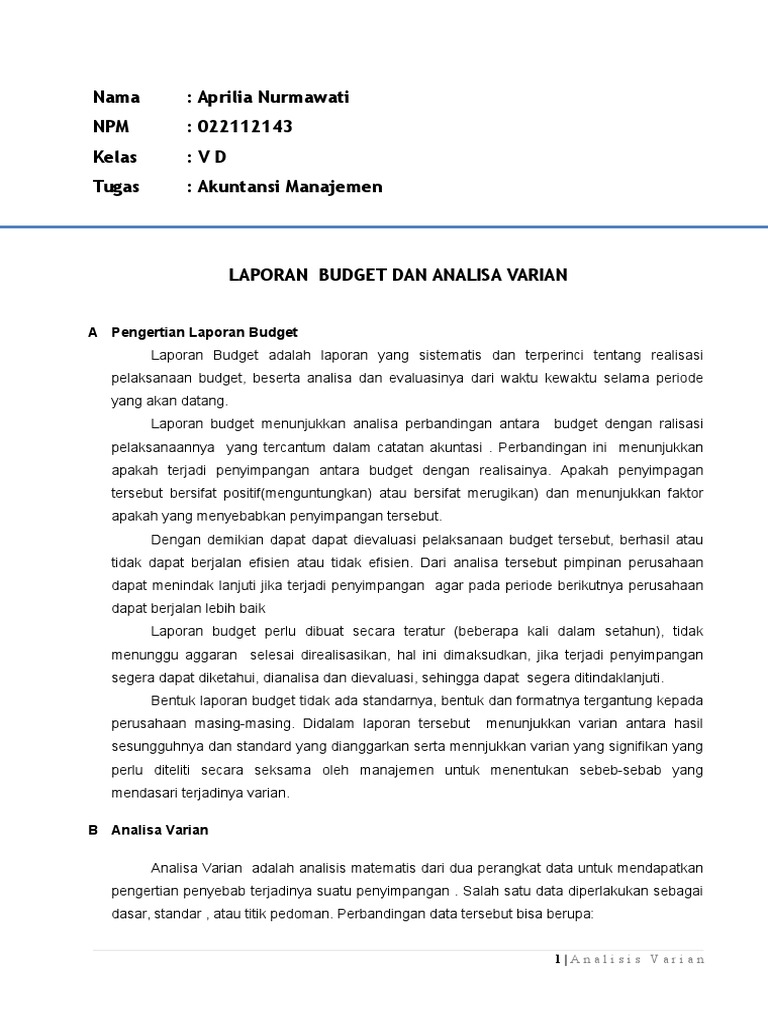 Analisis Varian Dan Laporan Budgeting