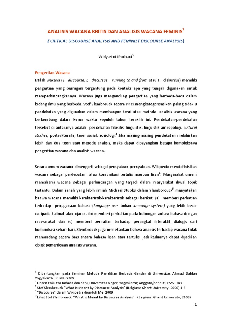 Sejarah Analisis Wacana Kritis Di Indonesia
