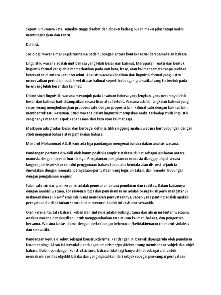 Analisis Wacana Pengertian Jenis Teori Manfaat Tujuan