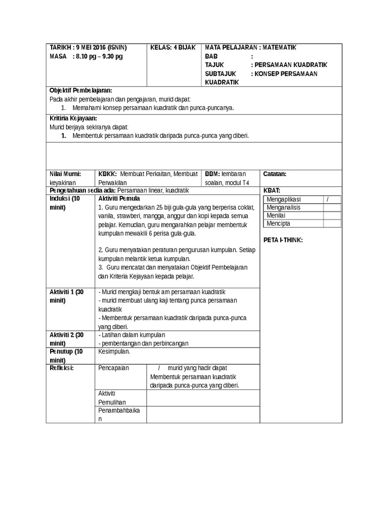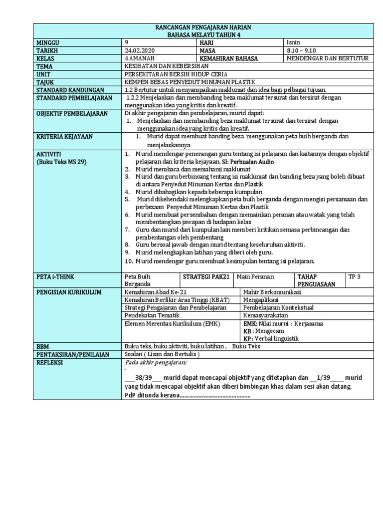 Doc Contoh Rph Sekolah Amanah Malik Ridzuan Academia Edu
