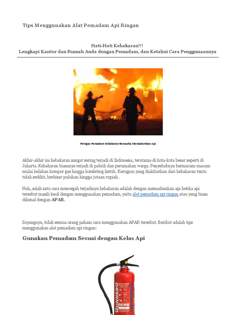 Tatacara Penggunaan Alat Pemadam Api Jenis Debu Kering
