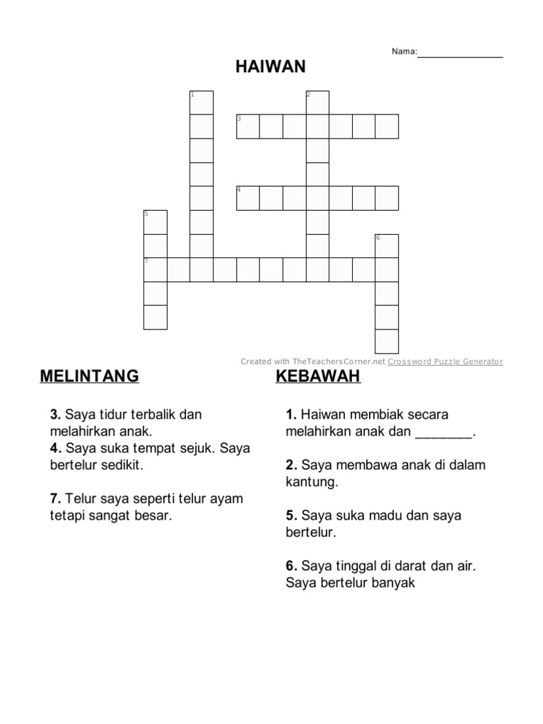 Silangkata Sains Tahun 2 Bab Haiwan