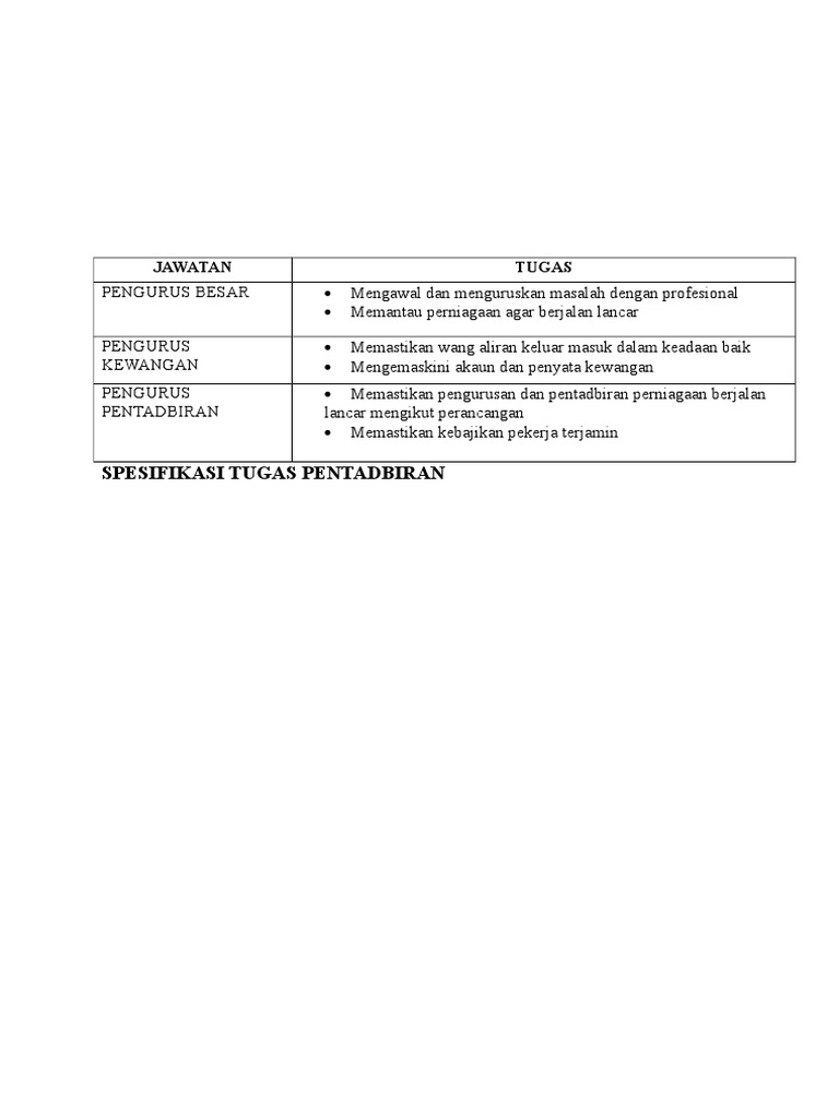 Spesifikasi Tugas Pentadbiran