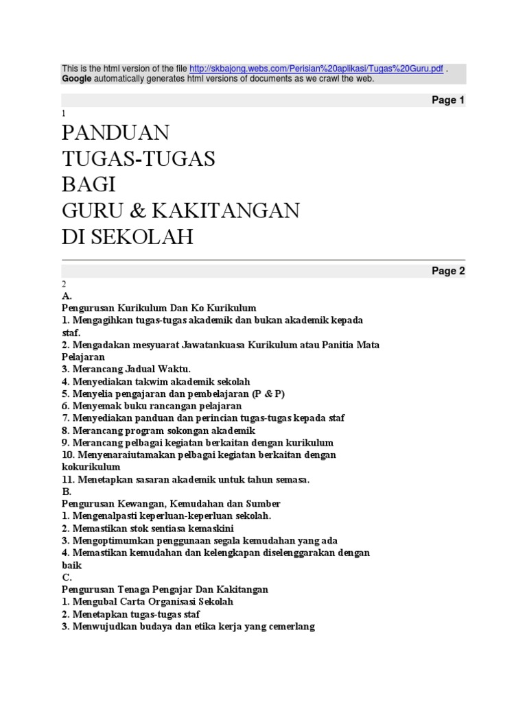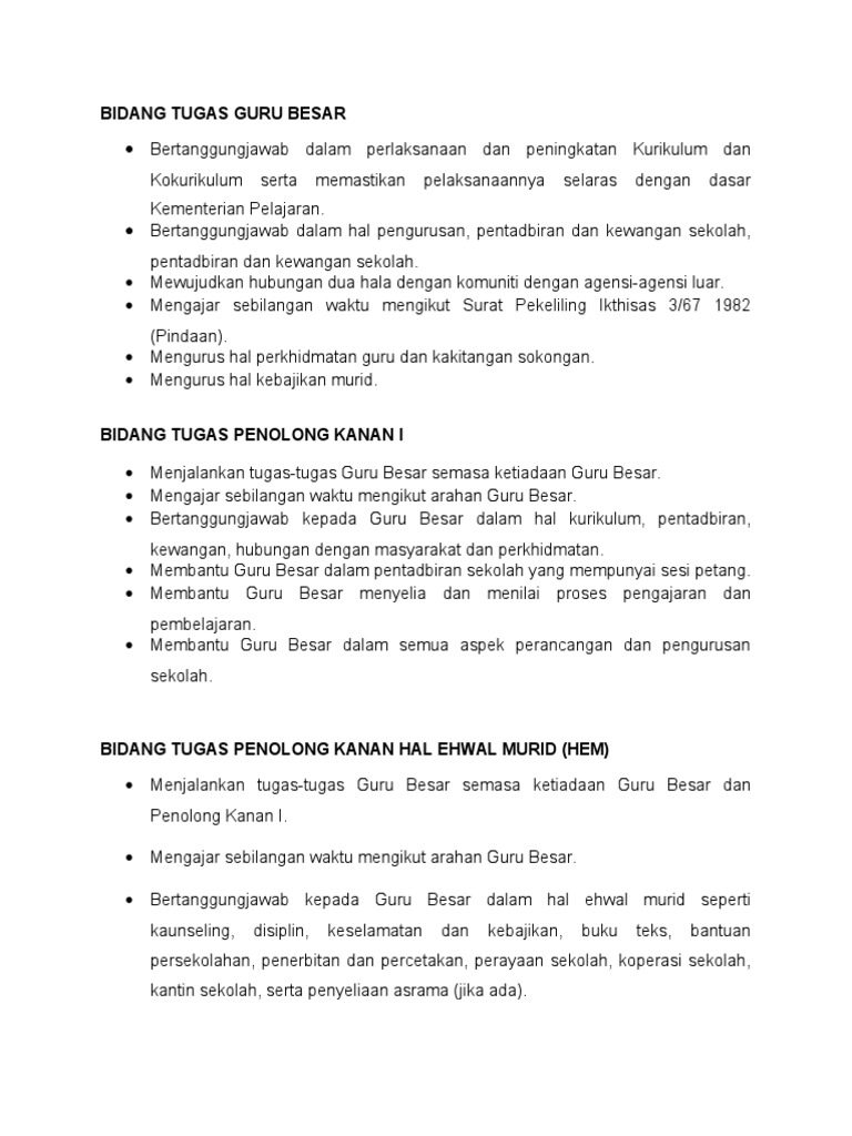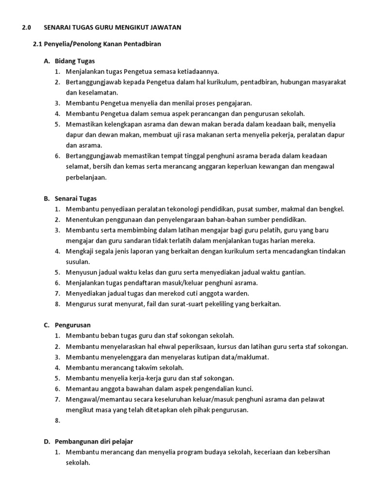 Senarai Tugas Guru Mengikut Jawatan