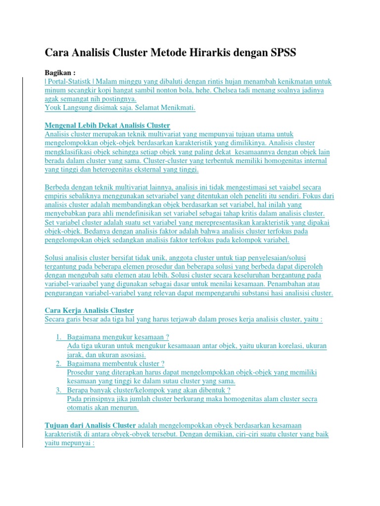 Cara Analisis Cluster Metode Hirarkis Dengan Spss