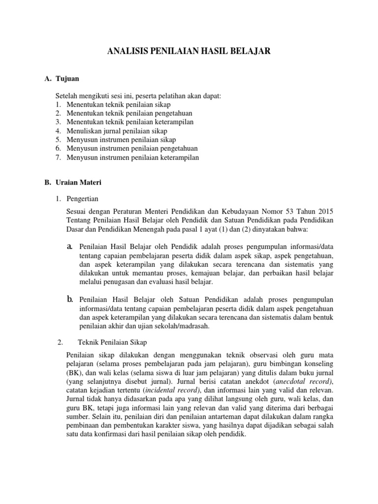 Analisis Penilaian Hasil Belajar