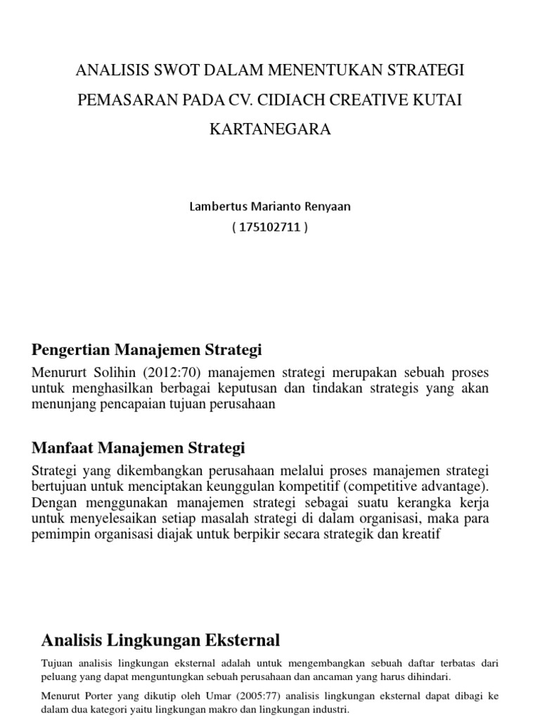 Analisis Swot Dalam Menentukan Strategi Pemasaran Pada Cv Cidiach