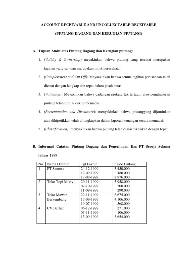 Piutang Dagang Pengakuan Pengukuran Penilaian Contoh Jawaban