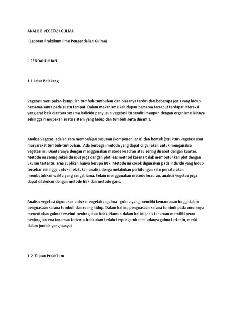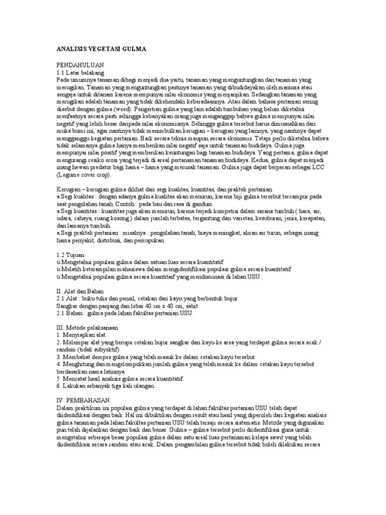 Doc Laporan Praktikum Pengelolaan Gulma Analisis Vegetasi Arief Septiawan Academia Edu