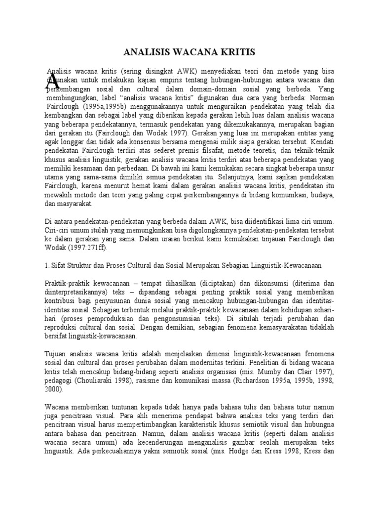 Pdf Analisis Wacana Kritis Dalam Pembelajaran Peran Awk Pada