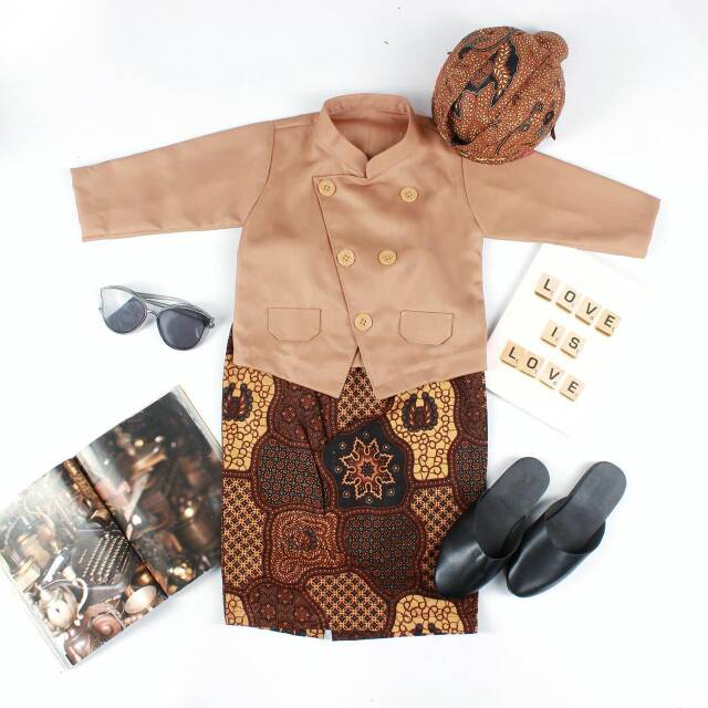 Beskap Anak Ready Stok Bahan Drill Halus Kombinasi Katun Batik Blangkon Warna Coklat Shopee Indonesia