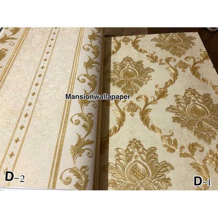 Wallpaper Dinding Murah Klasik Multi Warna Coklat Abu Gold