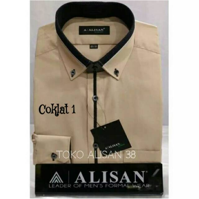 Kemeja Alisan Slim Fit Lengan Panjang List Tengah Warna Coklat 1