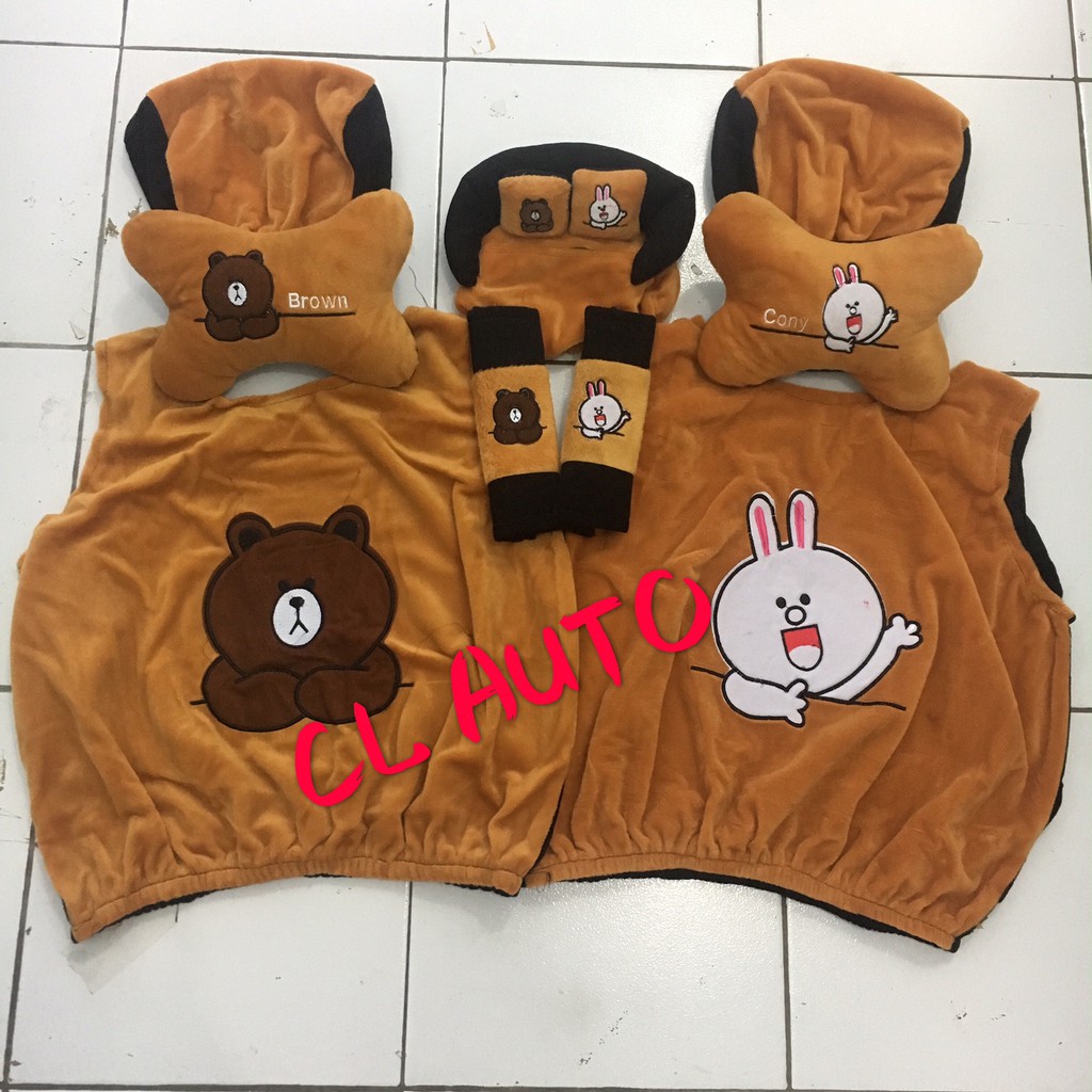 Sarung Jok Mobil 5 In 1 Karakter Brown Cony Warna Coklat Bantal