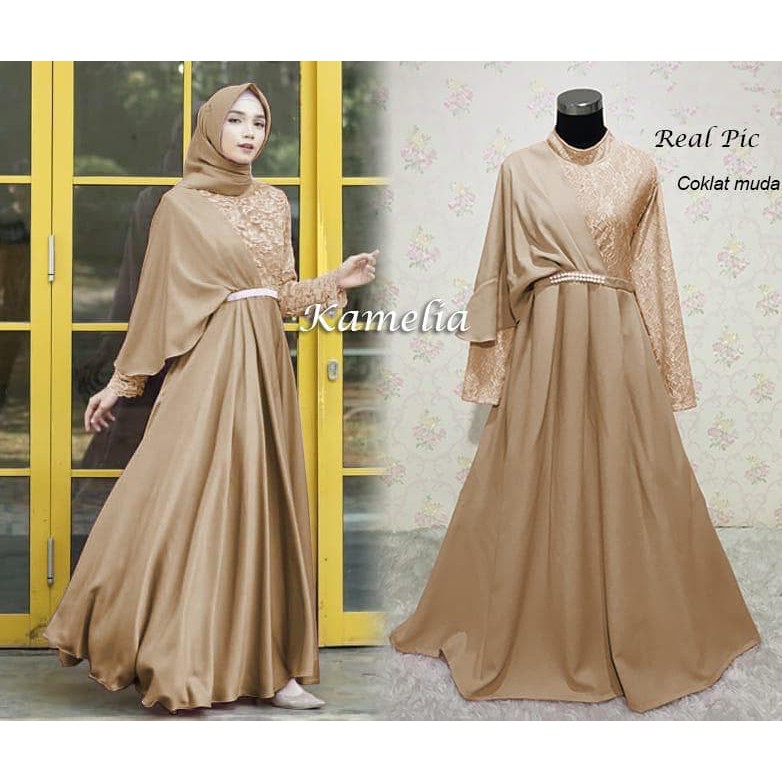 T26 Baju Pesta Wanita Maxy Brukat Brokat Kamila Bhn Moscrepe Motif