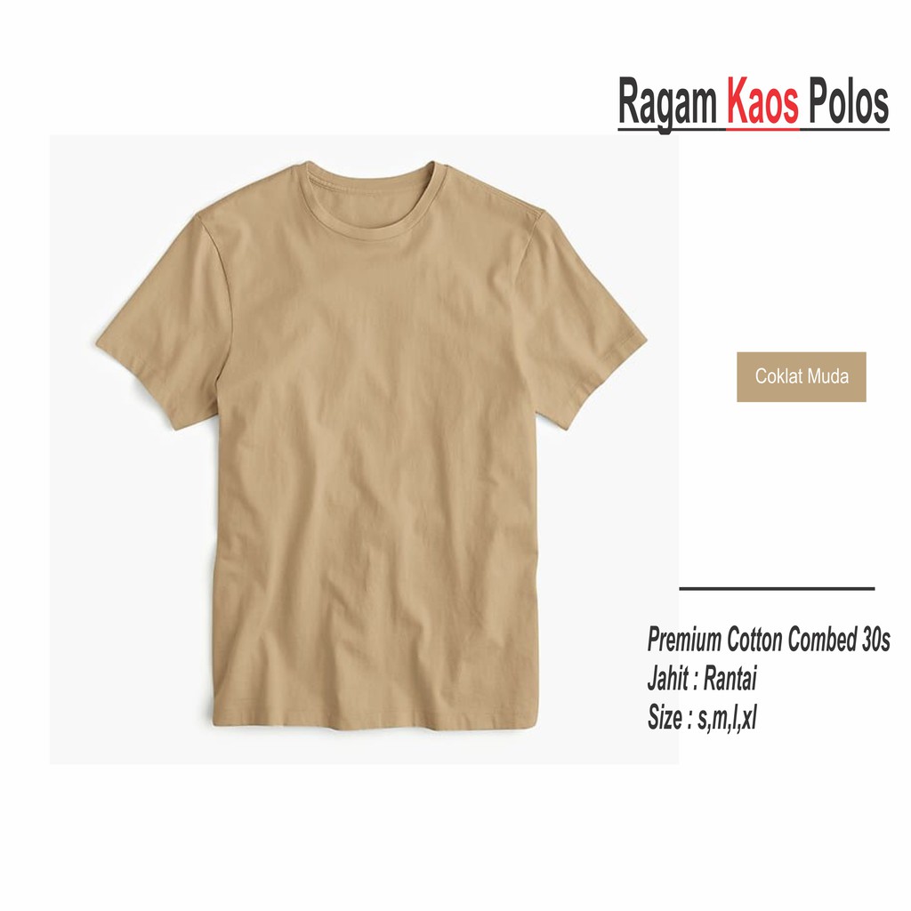 Kaos Polos Coklat Muda Cotton Combed 30s Reaktif 100 Premium