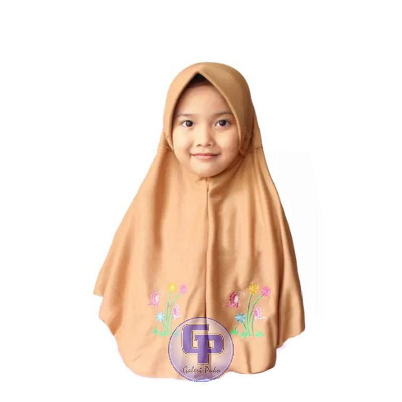 Galeripuko Coklat Karamel Jilbab Instan Serut Bordir Anak